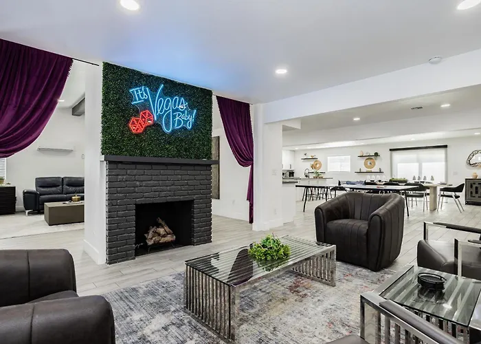 International McCarran de Las Vegas est accessible en moins de 15 minutes en voiture et les attractions naturelles comme Le Volcan du Mirage sont à 10 minutes en voiture. Les clients trouveront la MGM Grand Garden Arena à moins de 6 km de cette villa de 4 chambres et le Parc à thème Adventuredome est dans une zone de 3,1 km. Villa Birch Entertainer Games Location And Views se trouve à environ 15 minutes en voiture de lieux familiaux tels que La Grande roue de Las Vegas High Roller.